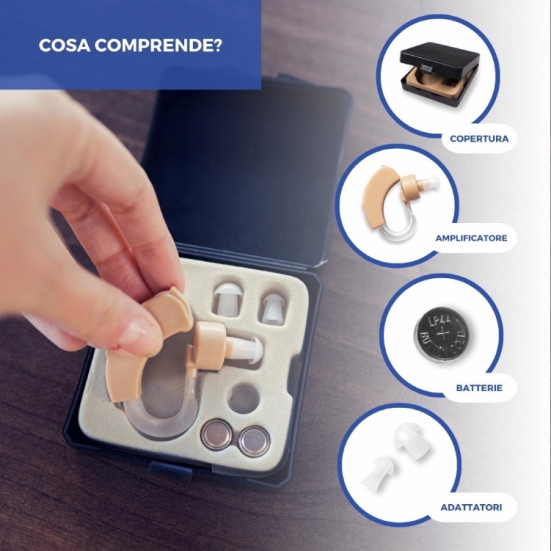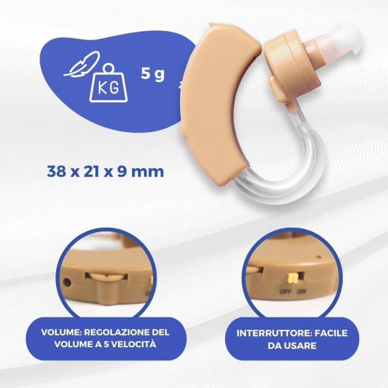 Questo amplificatore audio ti aiuterà a migliorare il tuo udito e a sentirti più connesso con l'ambiente circostante. È un dispositivo che aumenta il volume dei suoni ambientali, particolarmente utile per le persone con ipoacusia lieve o moderata.
