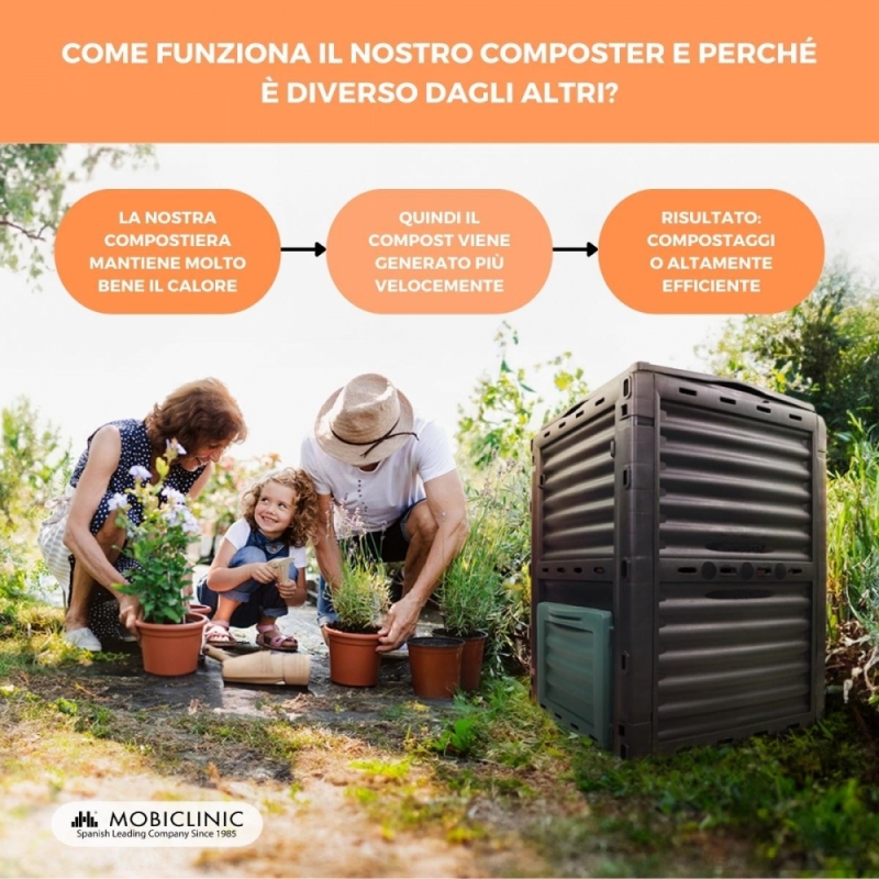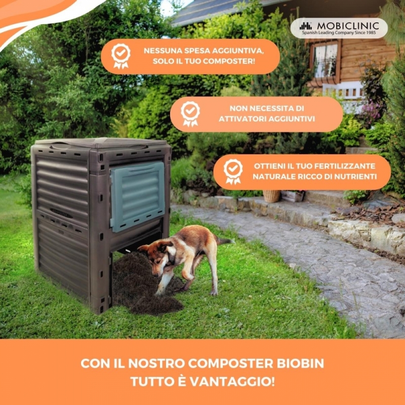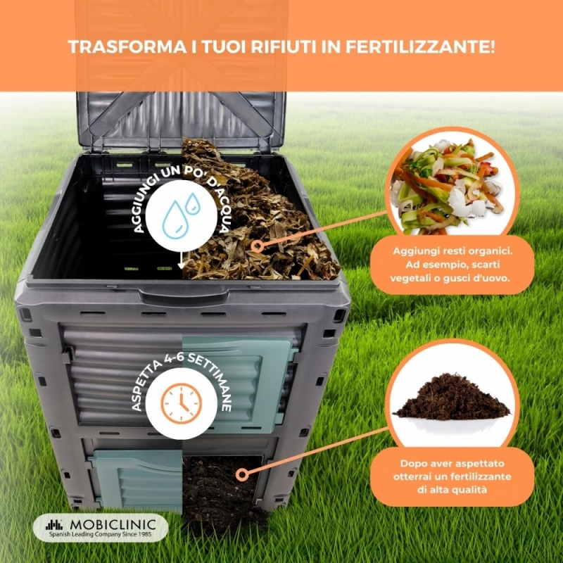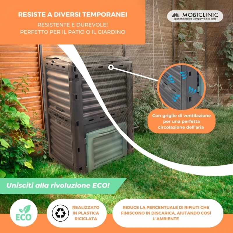 Compostiera | Trasformatore di rifiuti | Per giardino | Senza attrezzi | Ecologico | 300 litri | BioBin | Mobiclinic
