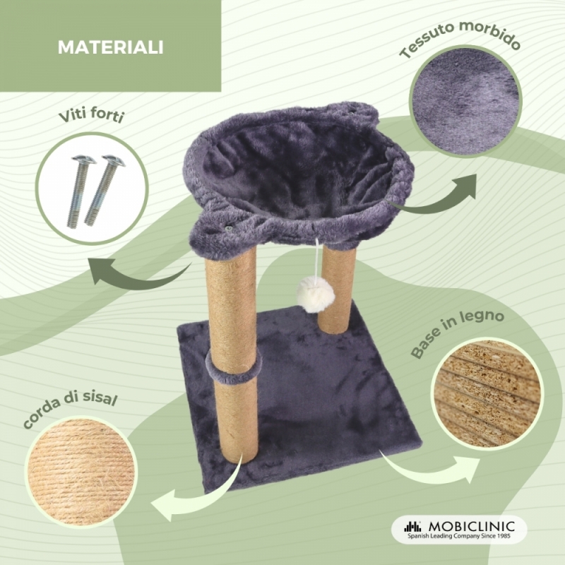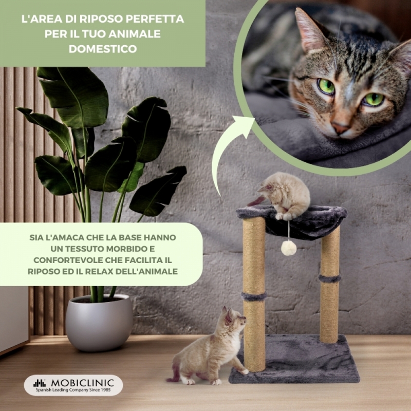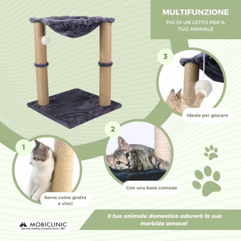 - Il suo design 2 in 1 , con tiragraffi e funzione amaca per riposare.
