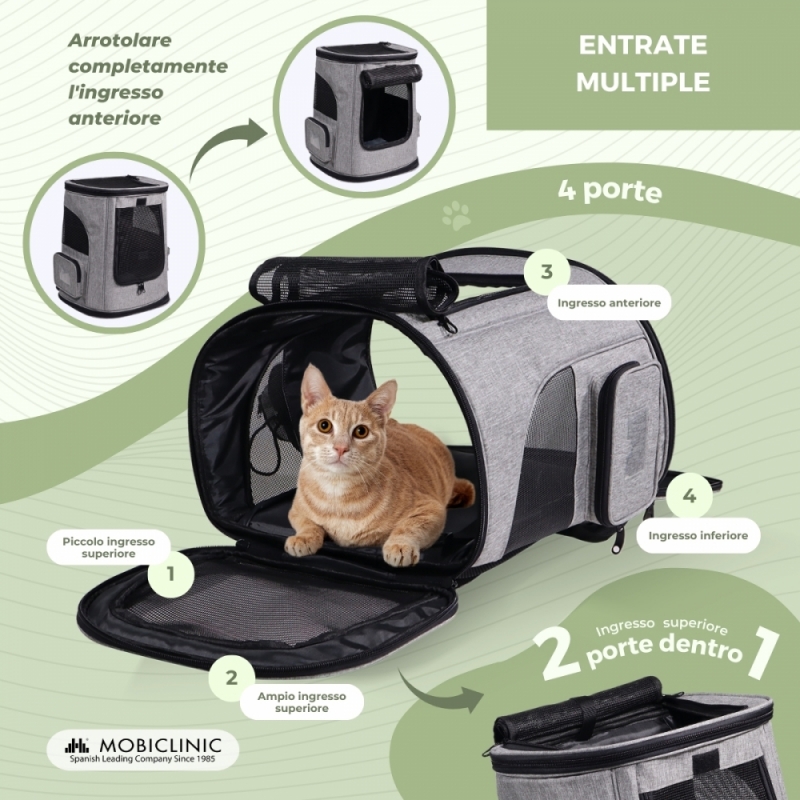 ACCESSO MULTIPLO: Questo trasportino per i tuoi animali offre diversi accessi al suo interno affinché sia tu che il tuo animale domestico possiate avere tutto più facilmente a seconda delle esigenze di ogni momento.