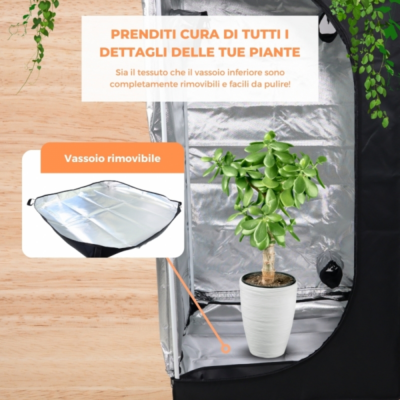 Con l'armadio di coltivazione Growbox puoi liberare le tue abilità di giardinaggio e prenderti cura al 100% delle tue piante e dei tuoi raccolti. Grazie al resistente tessuto in nylon e alle cerniere progettate per bloccare la luce, garantisce un ambiente impermeabile al 100%, massimizzando la riflettività e la distribuzione della luce.