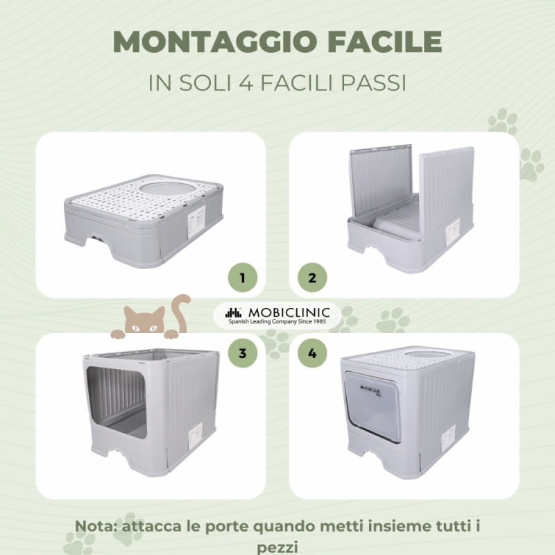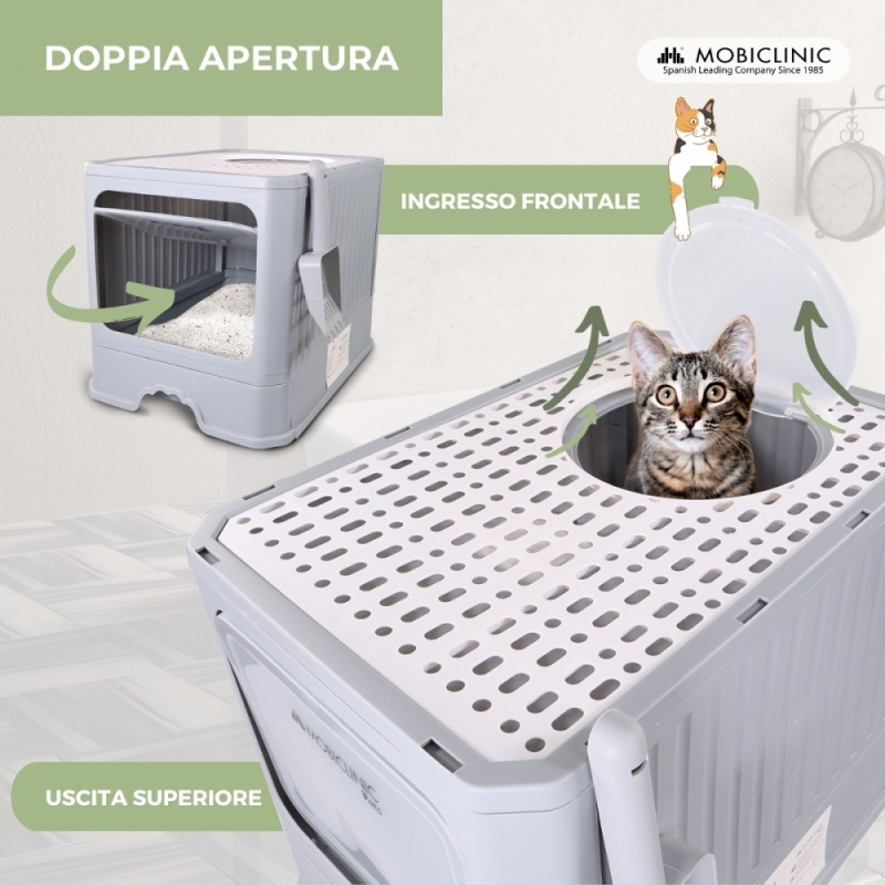 STRUTTURA : La lettiera chiusa per gatti ha una griglia superiore che fornisce una presa sicura quando il gatto lascia la lettiera, impedendogli di scivolare e mantenendo l'area pulita. Il vassoio estensibile semplifica il cambio della lettiera, eliminando ogni sforzo inutile e facilitando il compito. Inoltre la porta è dotata di battute inferiori, con apertura solo verso l'interno. Fornisce maggiore stabilità, mentre l'uscita superiore offre una rapida alternativa al sollevamento.