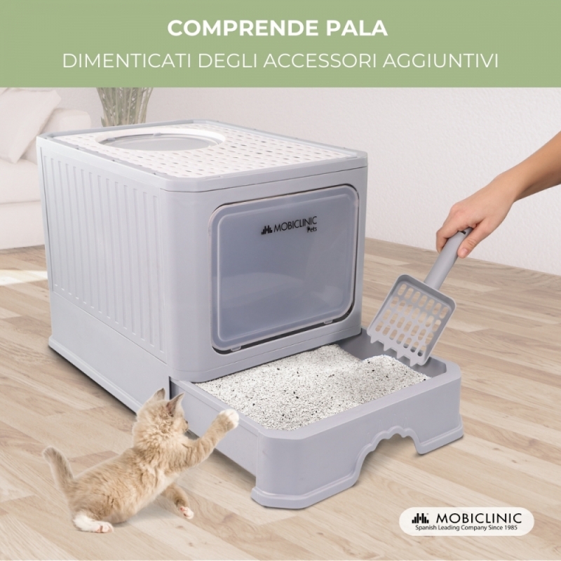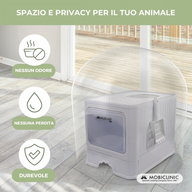 Lettiera per gatti | Chiusa | Include pala | Grande capacità | Vassoio estensibile e rimovibile | Stabile | CatBox | Mobiclinic