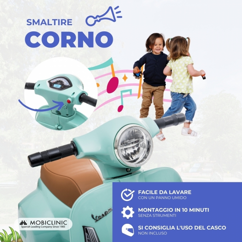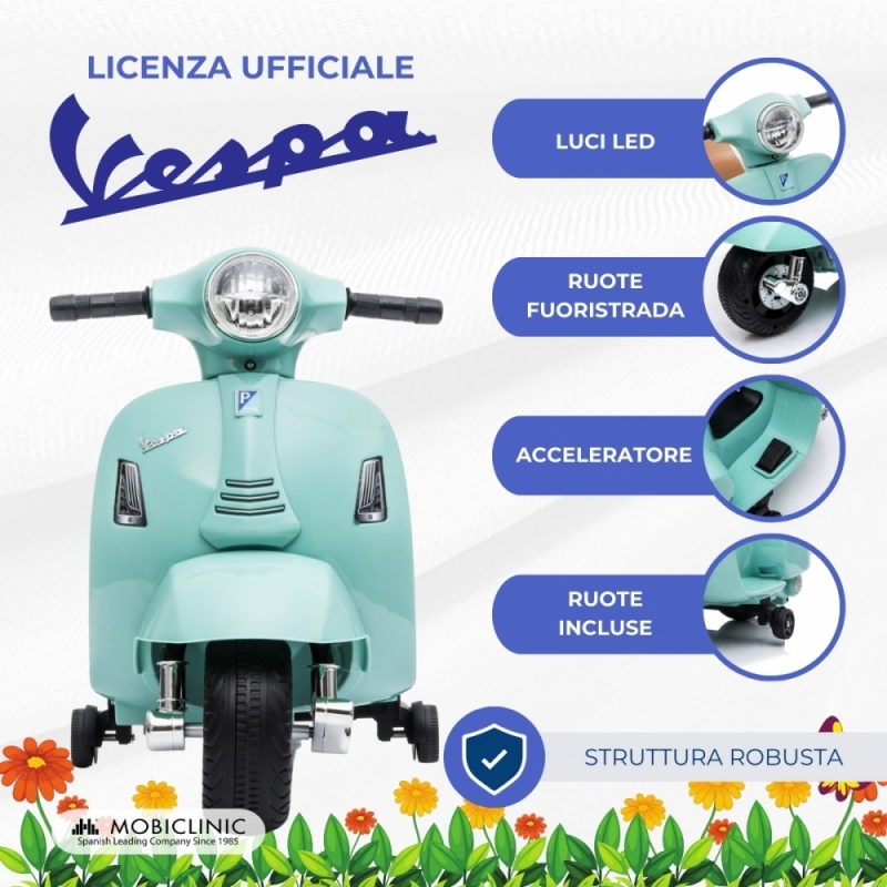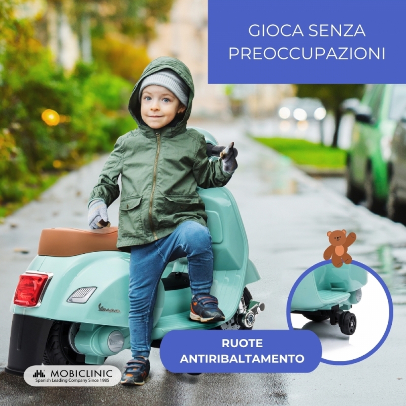 Moto elettrica per bambini | Vespa Piaggio | Antiribaltamento | Motore 30W | 2,5 km/h | Effetto musicale | Roma | Mobiclinic