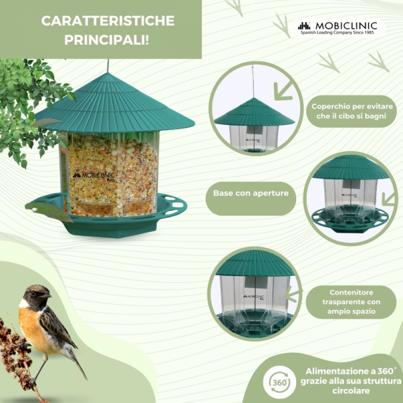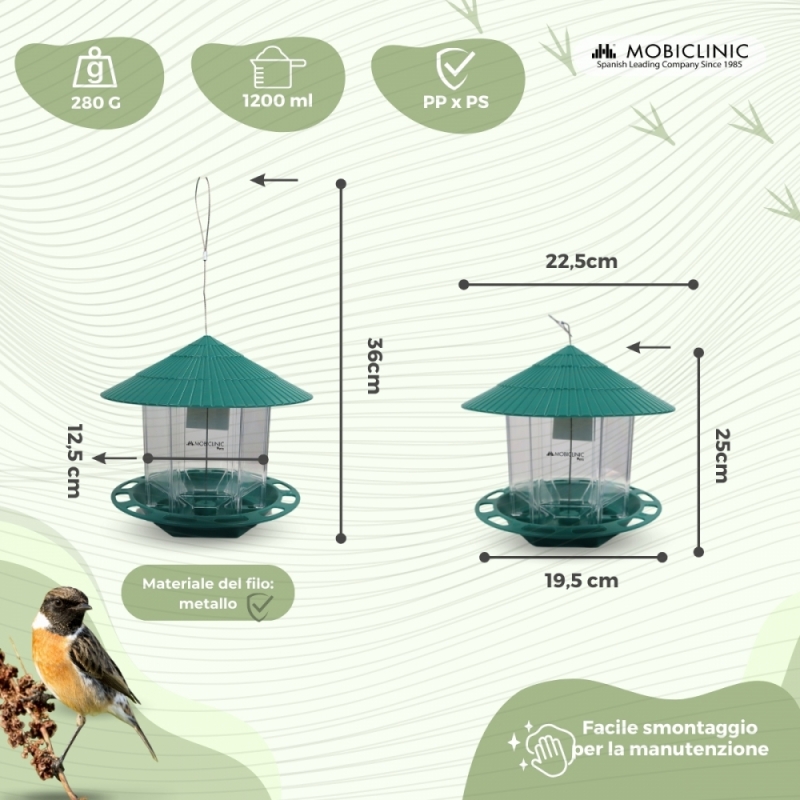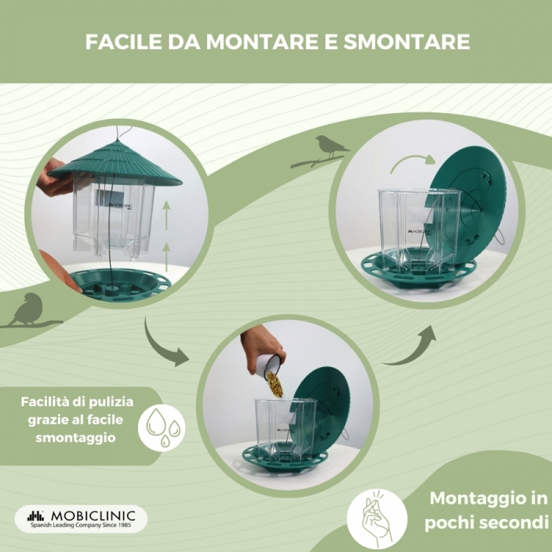- Si distingue per la sua facile manutenzione, garantendo la felicità e la salute degli uccelli in visita.