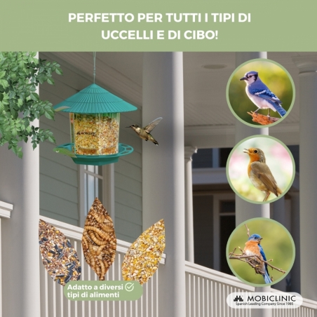 Mangiatoia per uccelli | Silvestres | 1,2 L | Esterno | 20 x 22 x 20 | Giardino | Sospeso | Passeri | Pico | Mobiclinic