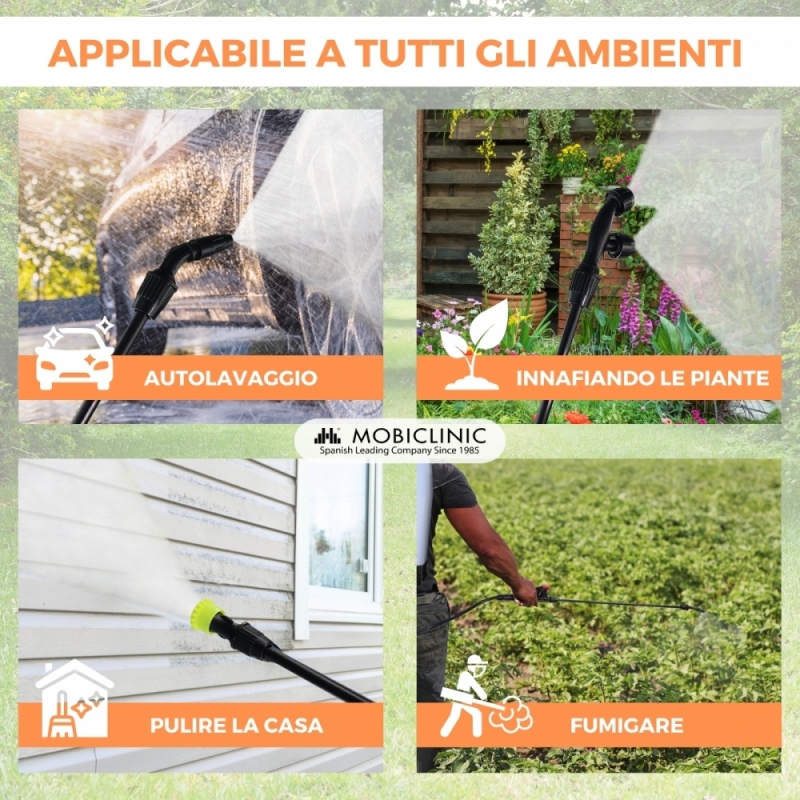 RISPARMIO RISORSE: consentendo un'applicazione mirata ed efficiente, aiuta a risparmiare risorse come acqua e prodotti chimici evitando inutili sprechi. È perfetto sia per l'agricoltura che per il giardinaggio e per vari usi nell'industria e nell'edilizia. Valido per applicare pesticidi, fertilizzanti chimici solubili, disinfettanti, detergenti e detergenti, questo irroratore gestisce tutto con efficienza e precisione.
