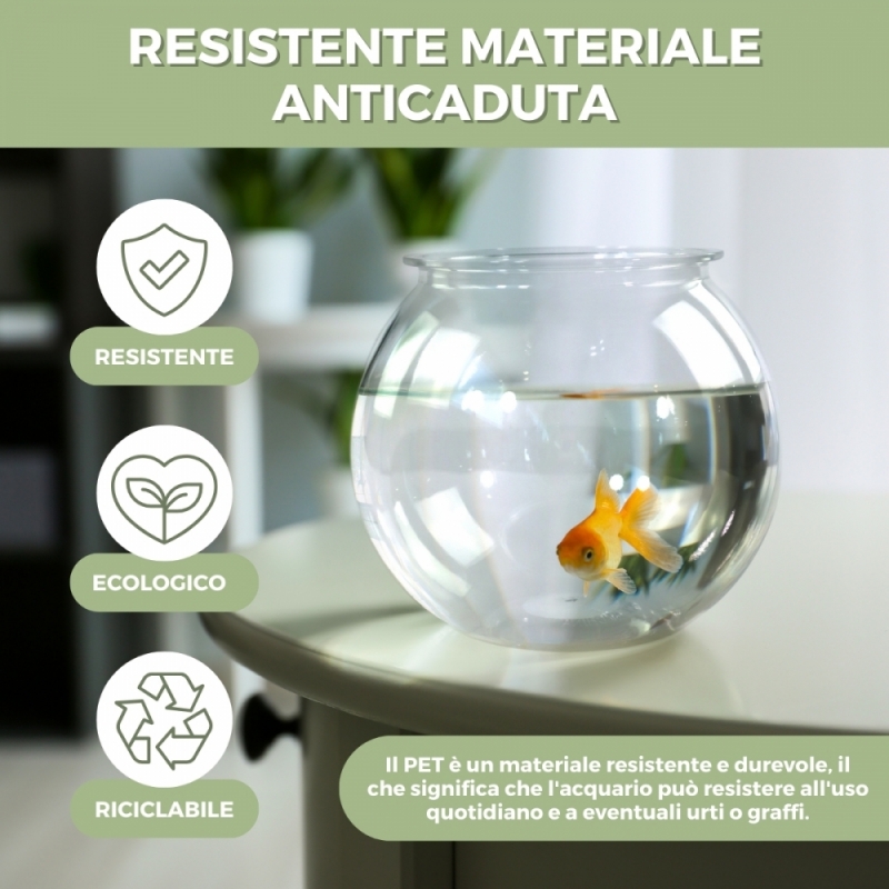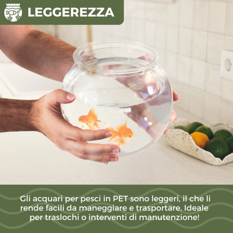 COMPATTO E TRASPARENTE: Con una capacità di 4 litri , l' acquario Nemo è ideale per pesci piccoli come betta o pesci rossi. Questo acquario occupa poco spazio, rendendolo perfetto per luoghi con limitazioni di spazio. Realizzato con materiale PET trasparente, permette una visione chiara dell'ambiente acquatico , facilitando l'osservazione dei pesci.