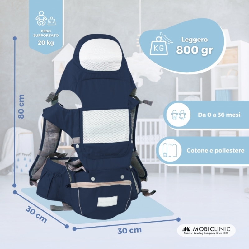 Marsupio 6 in 1 | Traspirante | 0-36 mesi | Spalline regolabili | Cotone | Tasca | Blu | Moley | Mobiclinic