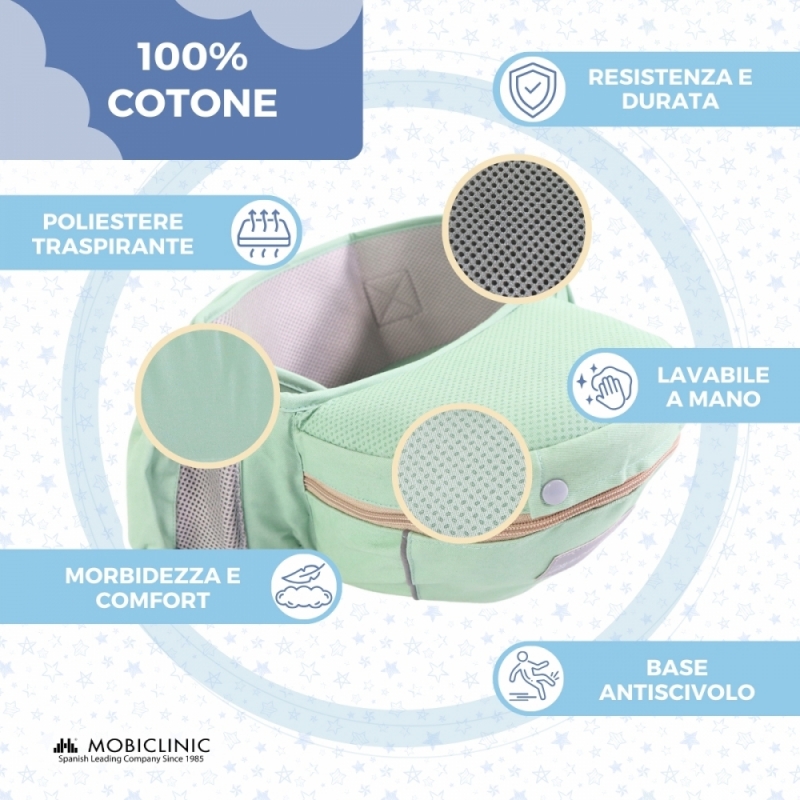 Marsupio 6 in 1 | Traspirante | 0-36 mesi | Spalline regolabili | Cotone | Tasca | Verde | Moley | Mobiclinic