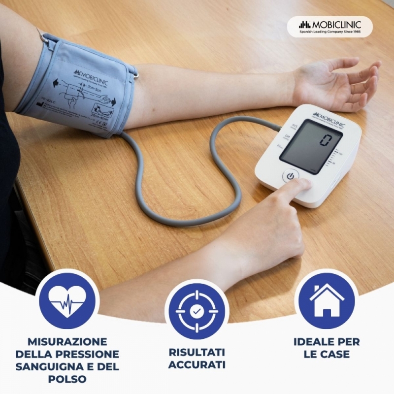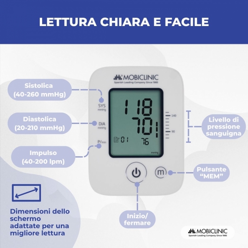 FACILE DA USARE: funziona con un unico pulsante centrale, rendendolo intuitivo e accessibile a qualsiasi utente. Inoltre, la sua base inclinata consente una migliore visibilità dello schermo LCD senza dover sollevare il dispositivo, rendendo la lettura ancora più facile.