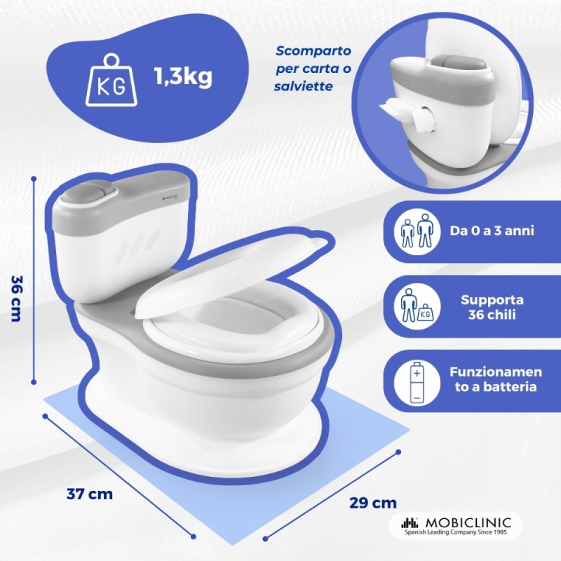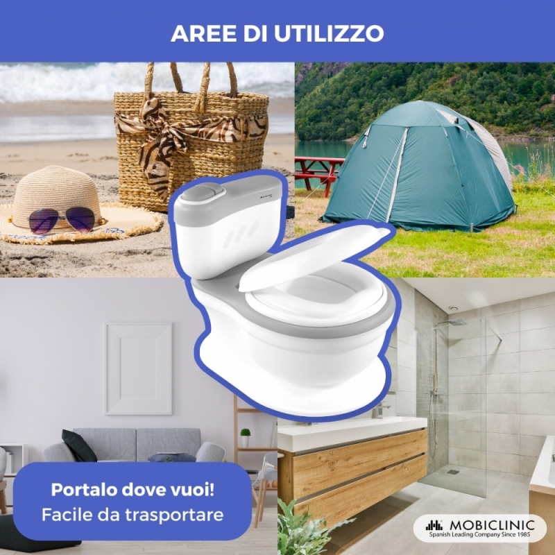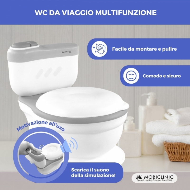 Toilette per bambini | Con suono | Secchio estraibile | Da 1 a 6 anni | Antiscivolo | Grigio | ToiKid | Mobiclinic