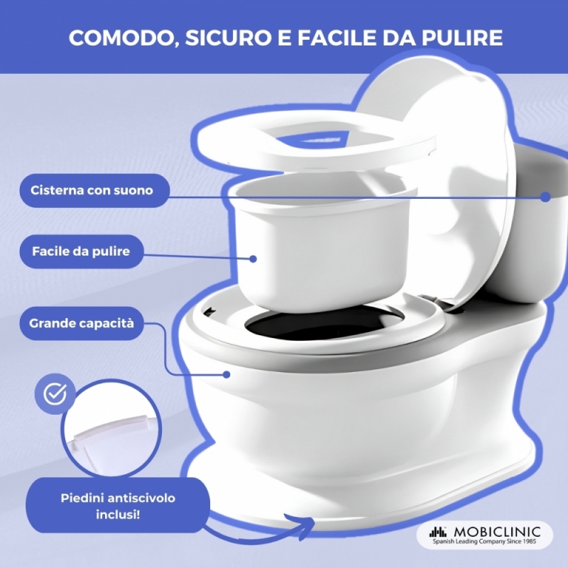 CONFORTEVOLE E SICURA: Il design di questa piccola toilette è studiato per garantire il comfort e la corretta postura del bambino. Inoltre, la sua superficie antiscivolo impedirà eventuali incidenti o il facile spostamento del prodotto.