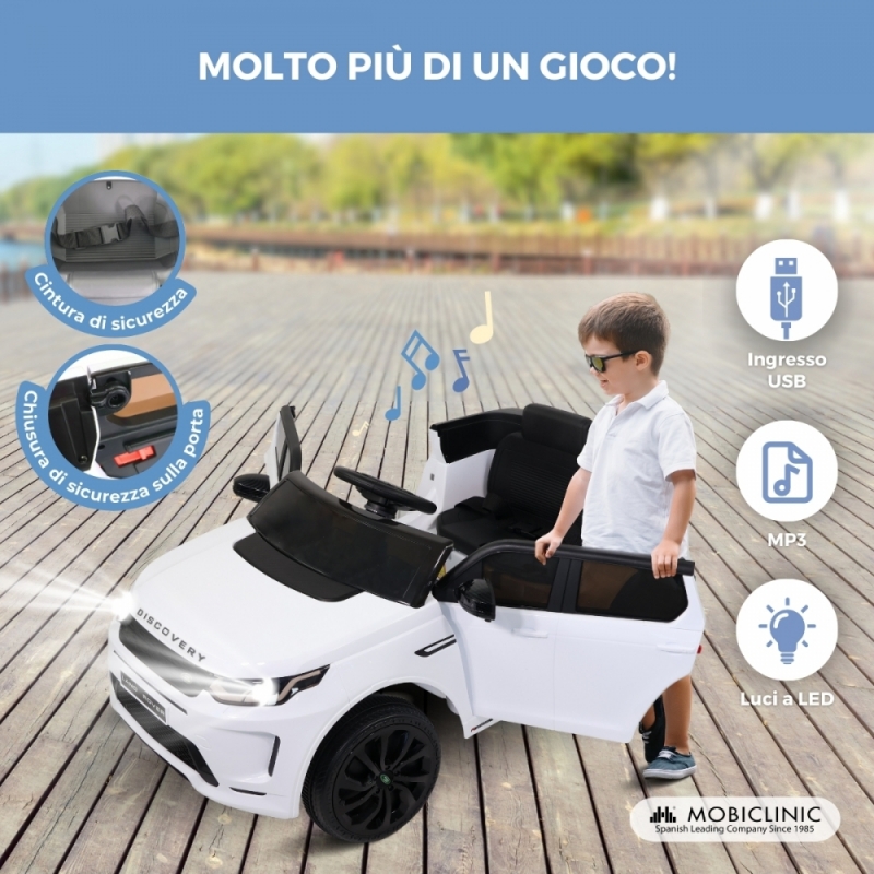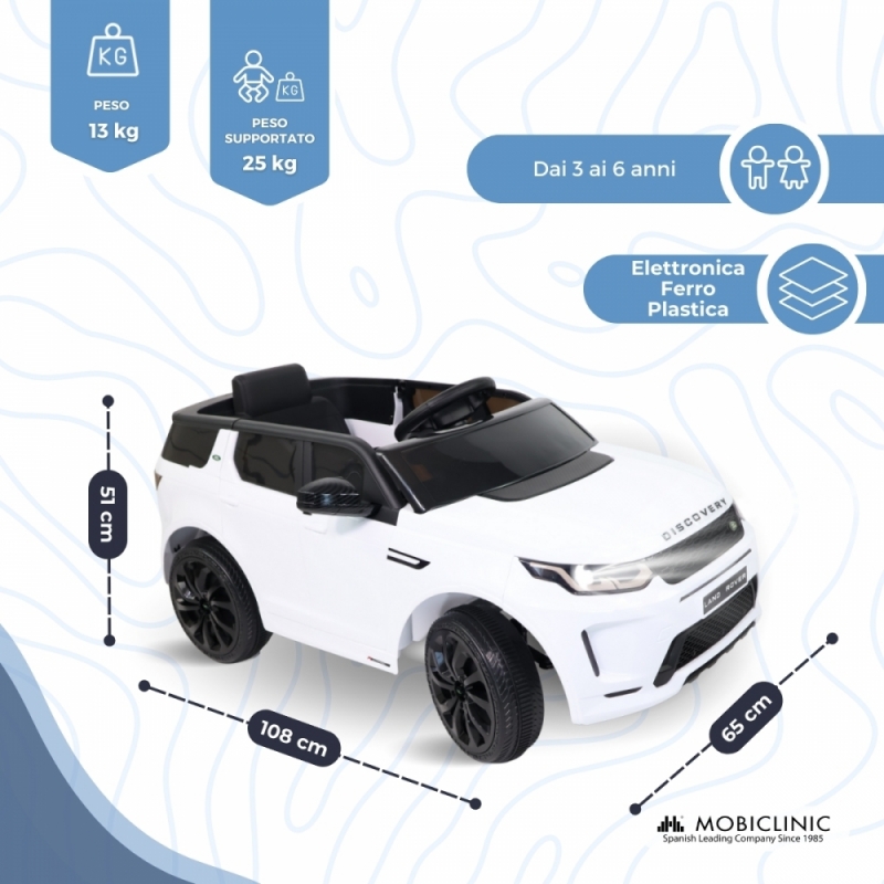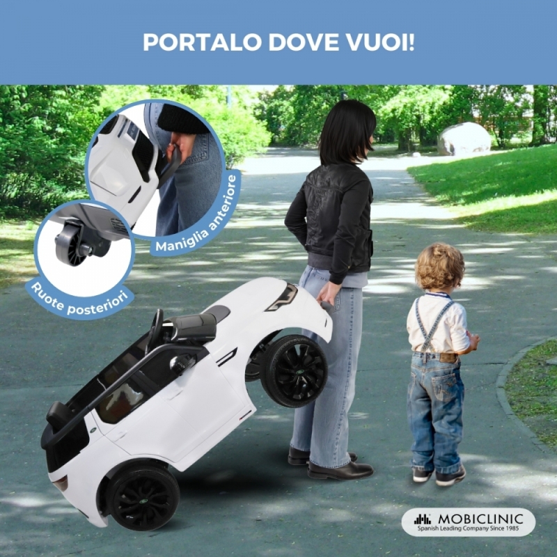 L'auto elettrica Mobiqueen, con patente Range Rover, offre un'esperienza di guida autentica ed emozionante per i più piccoli. Con dimensioni di 108 cm di lunghezza, 65 cm di larghezza e 51 cm di altezza, è ideale per bambini di età compresa tra 36 e 72 mesi, fornendo un modo divertente e sicuro per sviluppare le capacità motorie e la coordinazione.