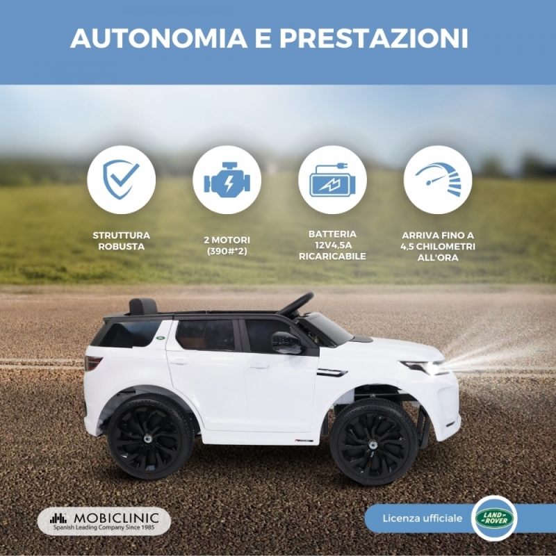 LICENZA RANGE ROVER : questa auto a batteria per bambini ha la licenza ufficiale Range Rover, garantendo un aspetto realistico del veicolo. È dotato di batteria da 12V4,5A e può raggiungere una velocità moderata, ideale per bambini dai 36 ai 72 mesi. Con il suo elegante design bianco e i dettagli realistici, conquisterà ogni piccolo avventuriero!