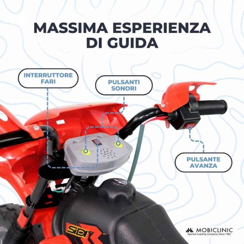 CARATTERISTICHE FUNZIONALI: Include interruttore della luce e ruote da allenamento per una maggiore stabilità. La batteria da 6V4AH garantisce una durata adeguata per avventure prolungate.