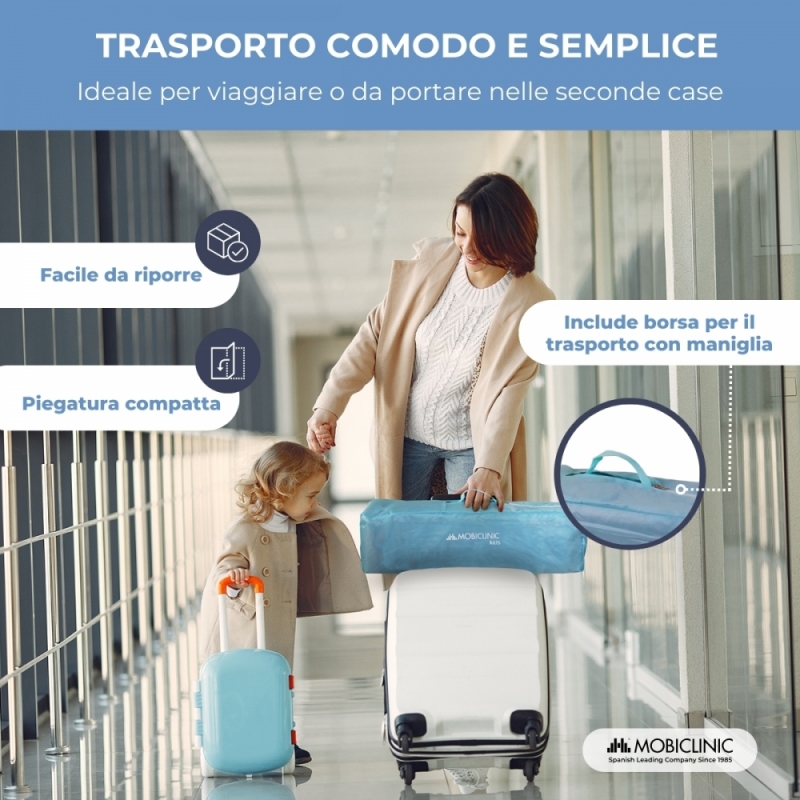 Questo lettino da viaggio è ideale per le famiglie che viaggiano spesso o che hanno seconde case. È un'opzione efficace anche da lasciare a casa dei nonni, degli zii o di altri parenti, e anche nelle stanze di transito, in modo che il bambino possa giocare o riposarsi per qualche minuto in tutta sicurezza sotto la supervisione di un adulto.