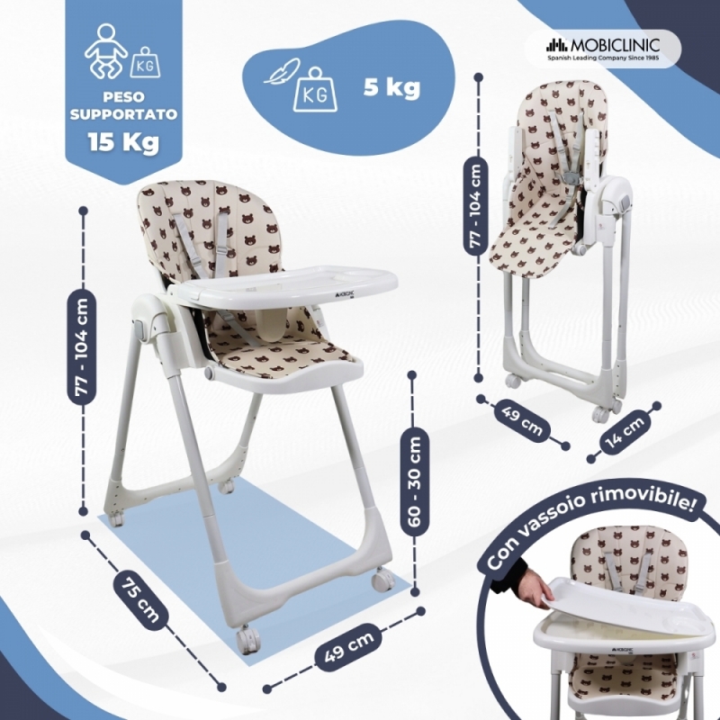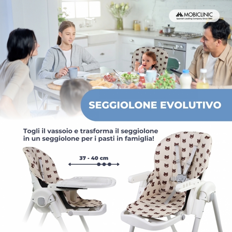 MULTIFUNZIONALITÀ: La possibilità di rimuovere il vassoio ne facilita l'uso prolungato come seggiolino quando il bambino è più grande, purché rispetti il peso massimo supportato. Ciò permette al bambino di giocare, dipingere, interagire con l'ambiente o anche imparare a usare le posate.