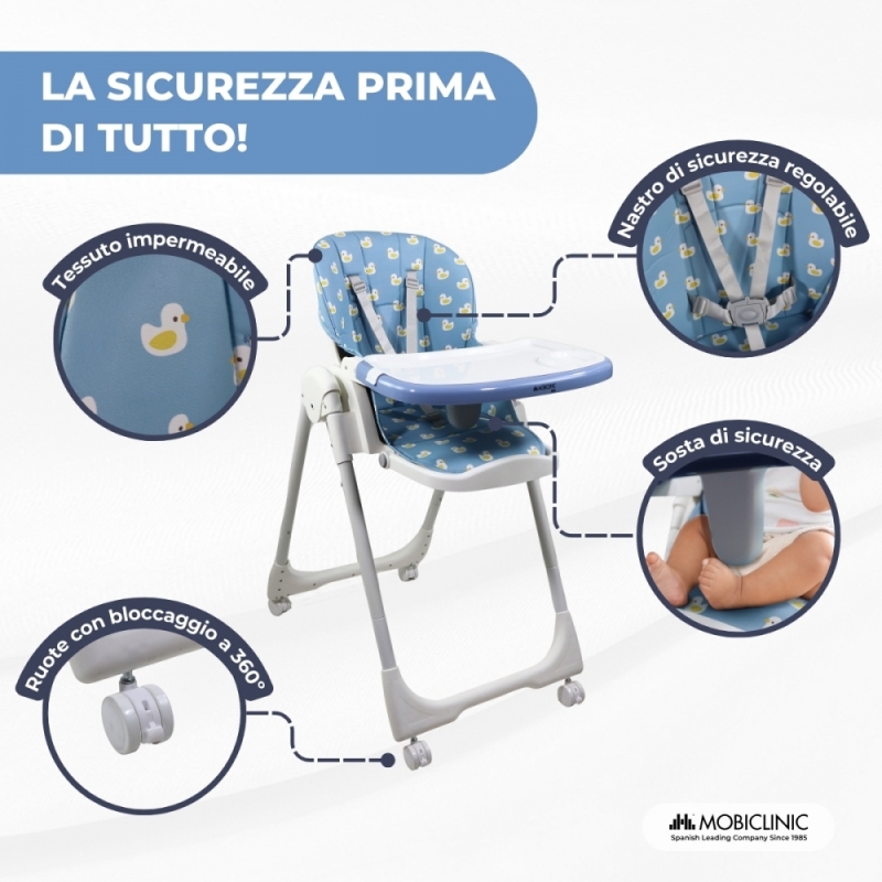Il seggiolone Simba è un modello di seduta ideale per tenere il tuo bambino sempre al sicuro e aiutarlo nella poppata. Il suo design versatile offre una moltitudine di usi e facilita la mobilità del bambino in modo che possa interagire con il suo ambiente.