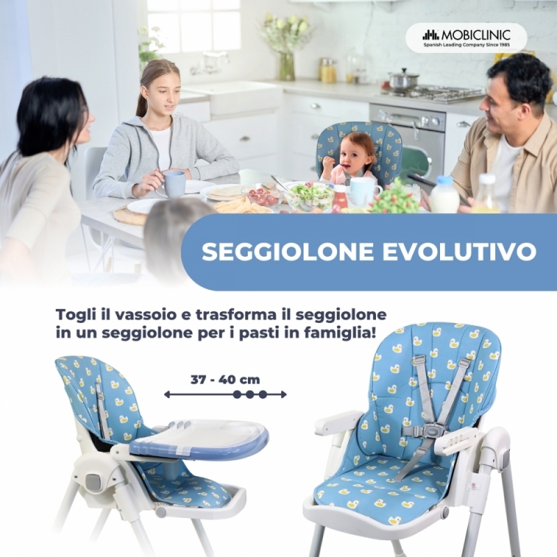 MULTIFUNZIONALITÀ: La possibilità di rimuovere il vassoio ne facilita l'uso prolungato come seggiolino quando il bambino è più grande, purché rispetti il peso massimo supportato. Ciò permette al bambino di giocare, dipingere, interagire con l'ambiente o anche imparare a usare le posate.