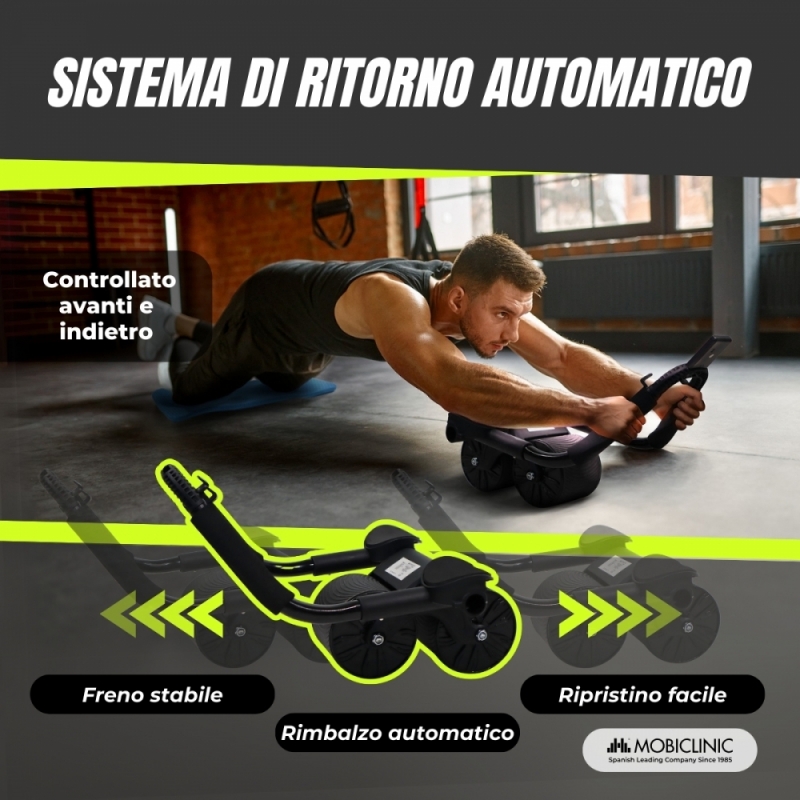 Dispone di un innovativo sistema di ritorno automatico, che facilita il ritorno del rullo nella posizione iniziale dopo ogni scorrimento. Questo sistema è molto utile, soprattutto per i principianti, poiché fornisce sicurezza e aiuta a controllare efficacemente i movimenti. Gli allenamenti più sicuri e accessibili a tutti.