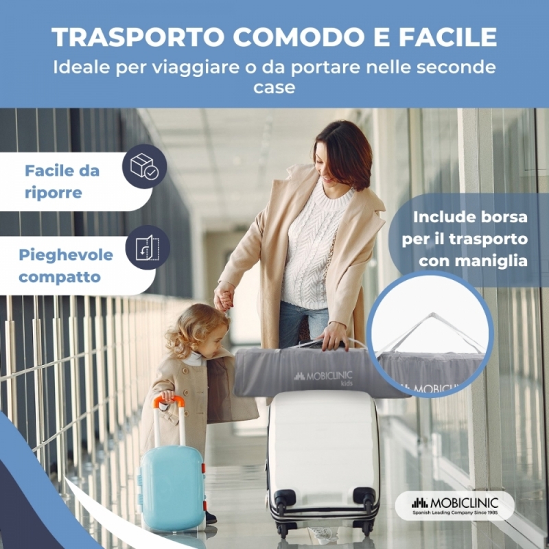 PIEGHEVOLE E PORTATILE: Il box Sleepland ha un sistema di chiusura facile e veloce che permette di riporlo o trasportarlo senza complicazioni, occupando il minor spazio possibile. Inoltre, include una resistente borsa da trasporto che renderà ancora più facile il trasporto, ideale per viaggi o visite. Perfetto per chi cerca comodità e funzionalità in un unico prodotto.