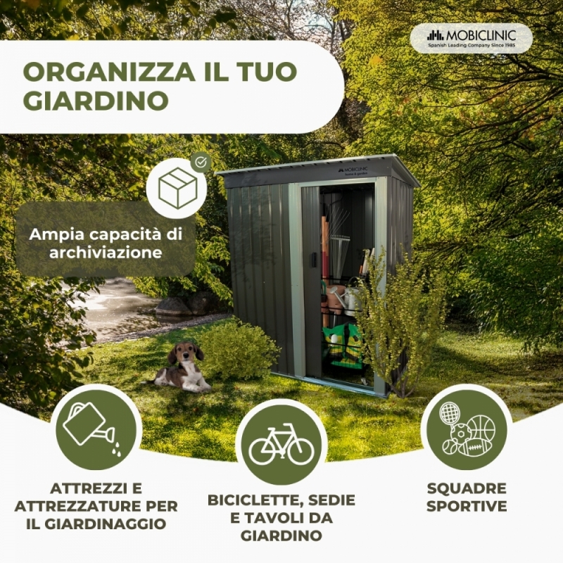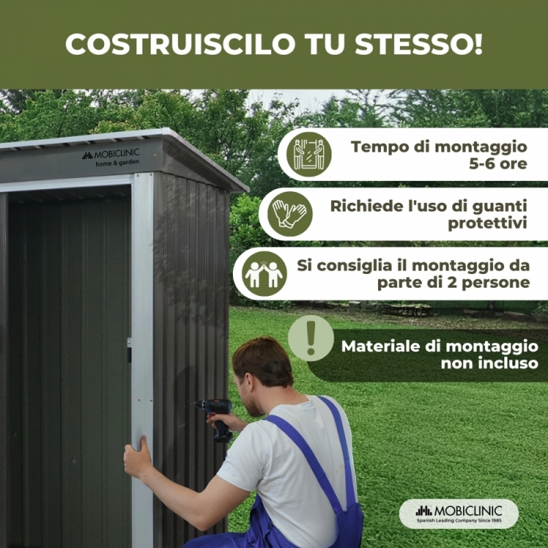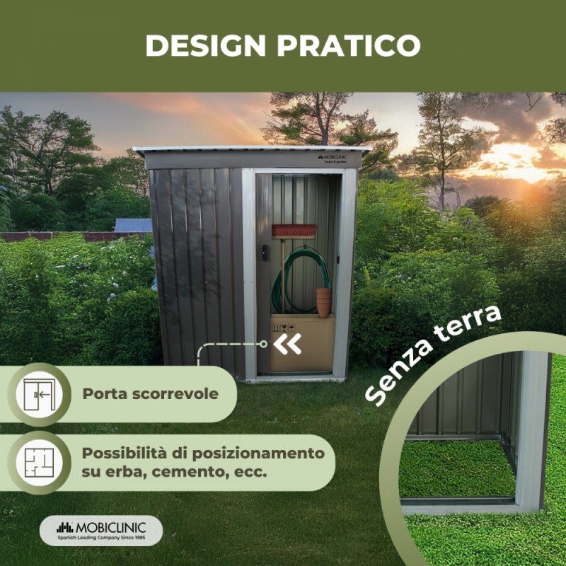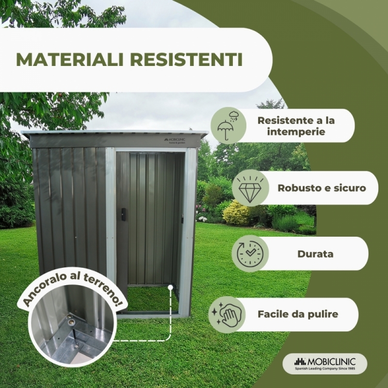 Capannone da giardino | Deposito | Tetto spiovente | Porta scorrevole | Bloccabile | Robusto | Nomi |Mobiclinic