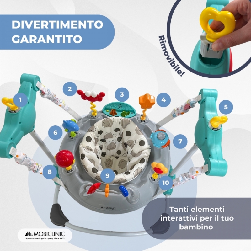 GIOCO INTERATTIVO: questo saltatore per bambini è la combinazione perfetta tra divertimento e apprendimento. Dispone di 8 giocattoli interattivi, musica con 7 canzoni integrate e luci che stimolano i sensi e lo sviluppo motorio dei bambini.