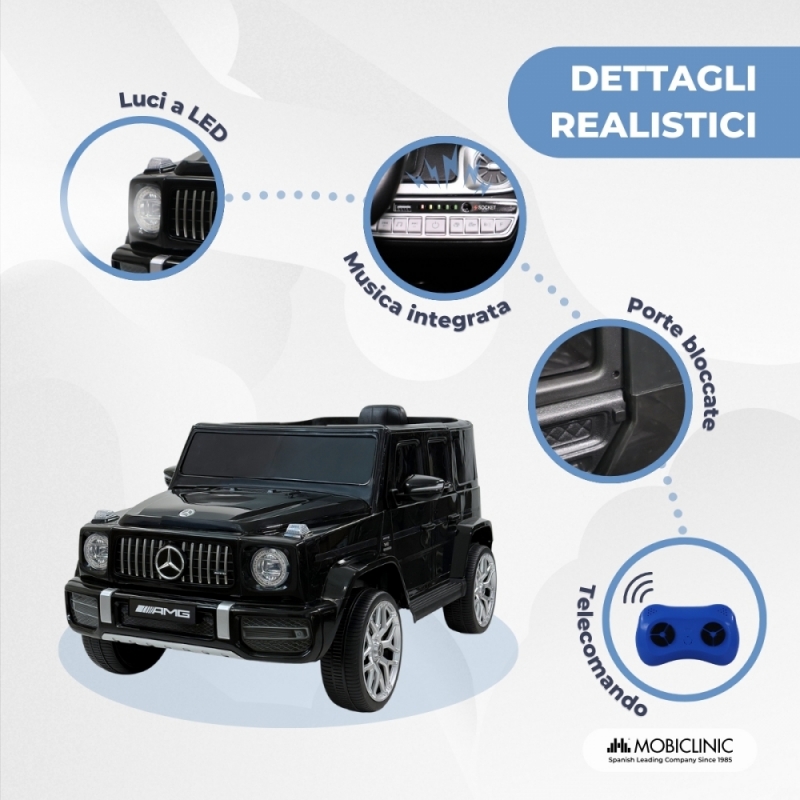 LICENZA MERCEDES: questa auto a batteria per bambini ha la licenza ufficiale Mercedes, garantendo un aspetto realistico del veicolo. È dotato di batteria da 12V4,5A e velocità massima di 5km/h, ideale per bambini dai 36 ai 72 mesi. Con il suo elegante design nero e i dettagli realistici, affascinerà ogni piccolo avventuriero!
