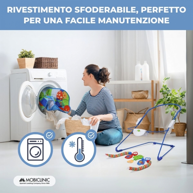 DESIGN ERGONOMICO: Progettata per offrire il massimo comfort, l'amaca per neonati è dotata di una seduta reclinabile in due posizioni, adattandosi alle esigenze del bambino, e il suo design favorisce una postura comoda in ogni momento. Il tessuto del sedile è sfoderabile e lavabile in lavatrice, rendendolo facile da manutenere e garantendo che il tuo piccolo sia sempre in un posto pulito.