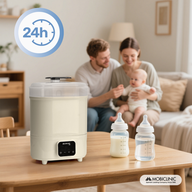 Lo sterilizzatore per biberon Mobibi è una soluzione pratica, veloce e igienica per la cura dei più piccoli. Il suo design combina quattro funzioni principali: sterilizzazione, asciugatura, controllo della temperatura e modalità automatica per una maggiore ottimizzazione dei tempi.