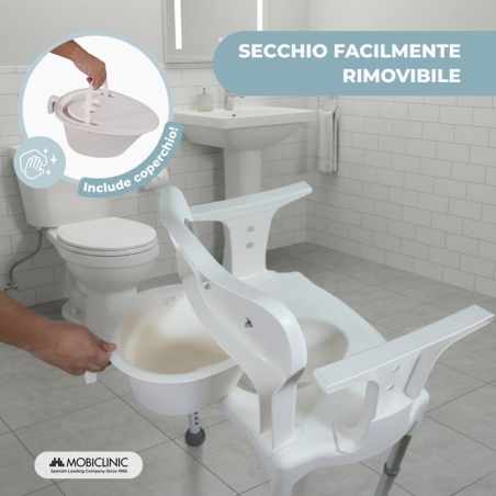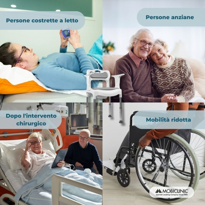 La sedia comoda Guido è una soluzione versatile, pratica e sicura per chi necessita di un supporto extra durante l'igiene quotidiana. Grazie al suo design multifunzionale, può essere utilizzata come sedia da bagno, WC portatile o seduta di supporto durante il bagno, adattandosi a diverse situazioni ed esigenze.