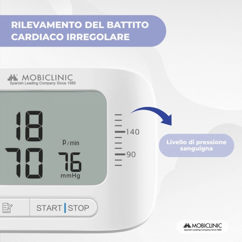 RILEVAMENTO DEL BATTITO CARDIACO IRREGOLARE: Il misuratore di pressione sanguigna Vitalpress non solo misura la pressione sanguigna e il polso, ma rileva anche eventuali irregolarità nel ritmo cardiaco durante la misurazione, avvisando l'utente. Questa funzione è fondamentale per il monitoraggio preventivo della salute cardiovascolare.