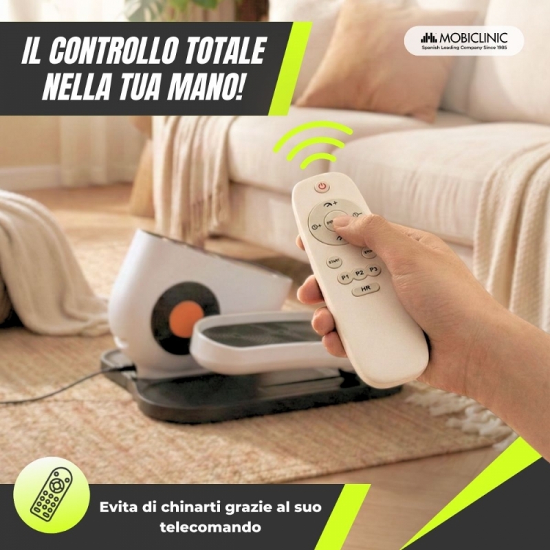 Il suo funzionamento silenzioso (<60 dB) lo rende la scelta perfetta per lavorare, leggere o guardare la televisione, senza alcun disturbo. Inoltre, la base stabile e i pedali antiscivolo garantiscono un utilizzo sicuro e controllato. È dotato di un senso di pedalata reversibile, che consente di variare il movimento, favorendo l'attivazione muscolare e la mobilità articolare e offrendo una maggiore versatilità.