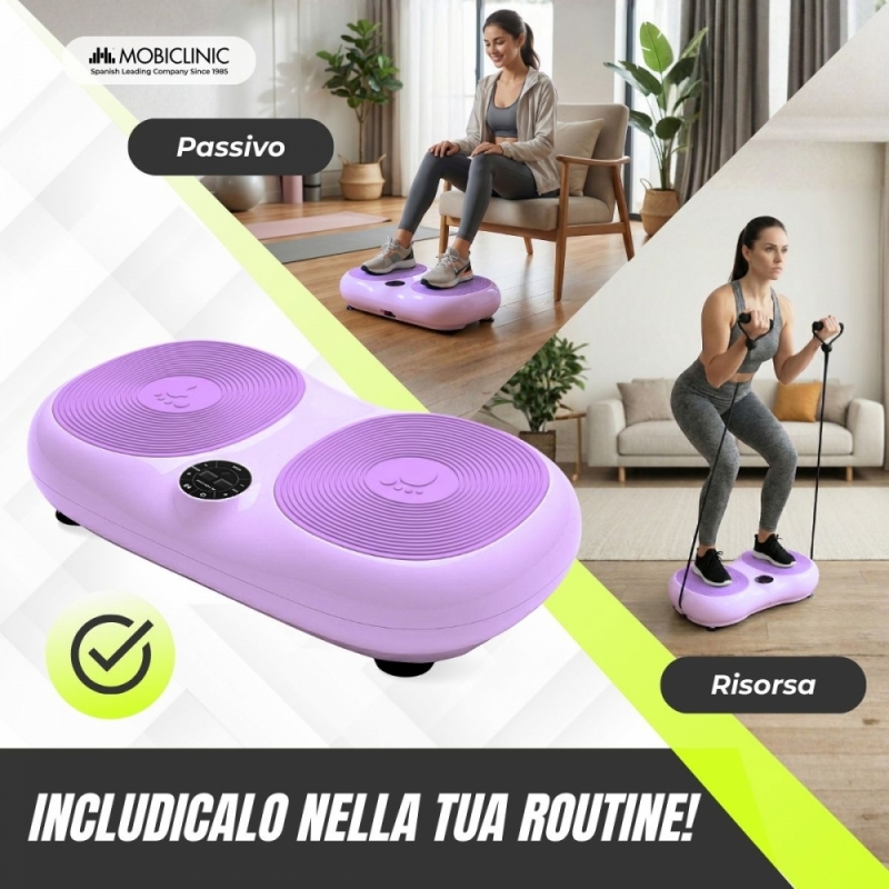 Piattaforma vibrante | 99 livelli di velocità | 9 programmi | Fasce elastiche | Schermo e telecomando | Karol | Mobiclinic