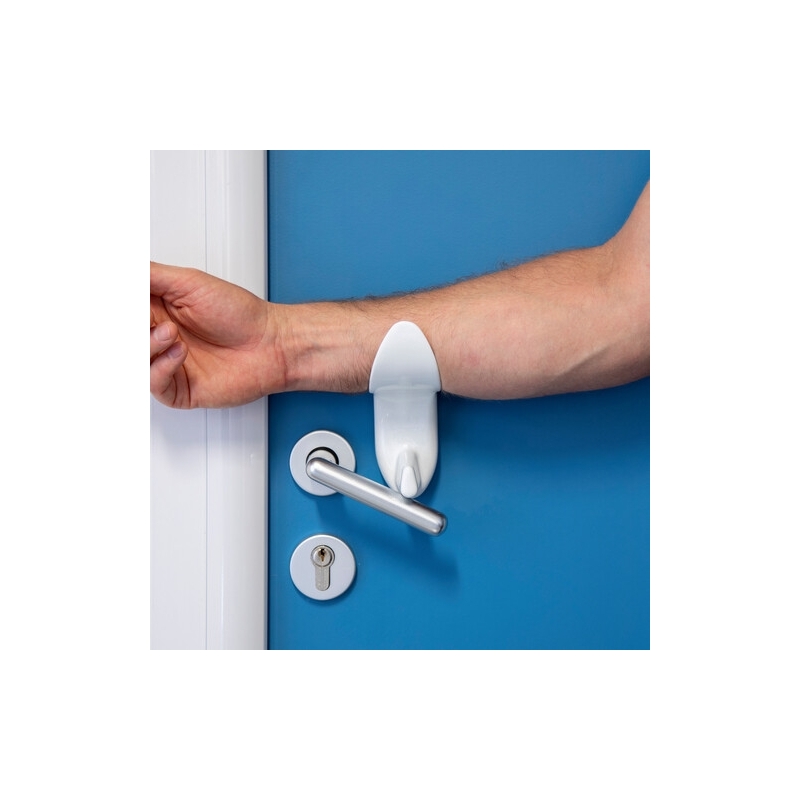 Il sistema Izidoor offre una soluzione di controllo accessi pratica e moderna. Il suo design in ABS consente di aprire e chiudere la porta tramite il braccio, eliminando la necessità di contatto diretto. Si tratta di uno strumento estremamente pratico per le porte, soprattutto in ambienti clinici e ospedalieri, per mantenere l'igiene in ogni momento e prevenire potenziali contaminazioni.