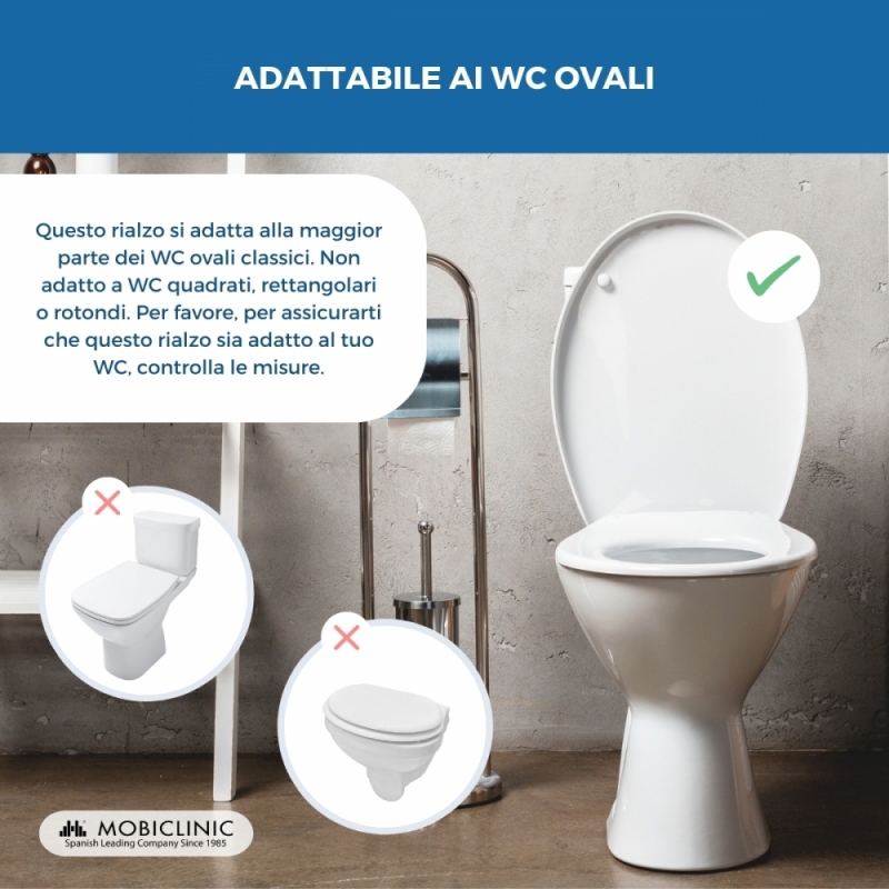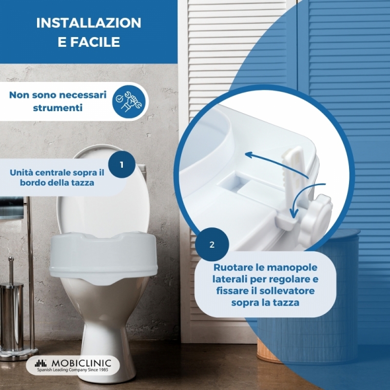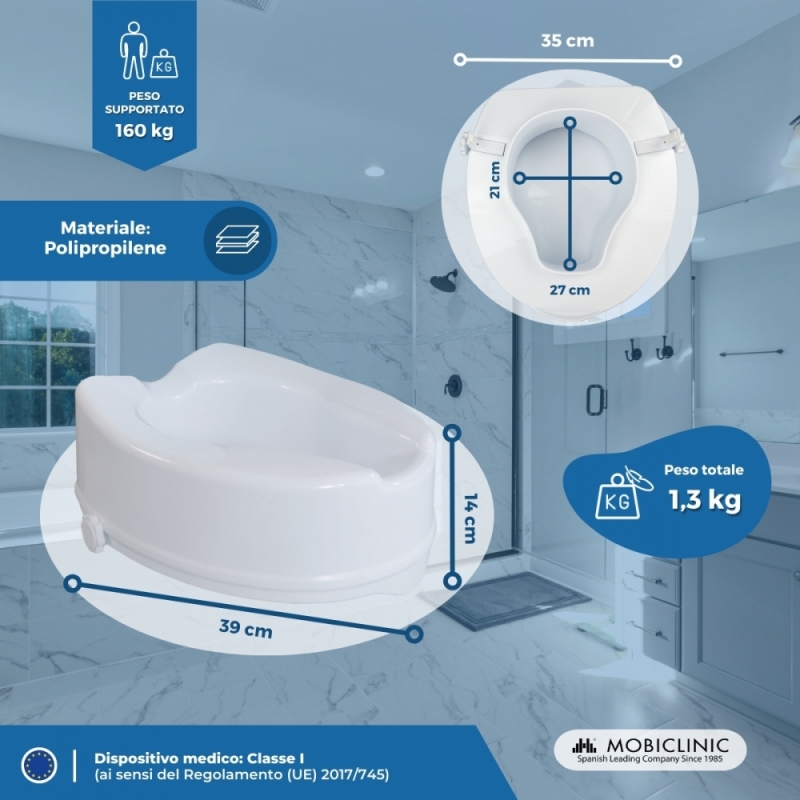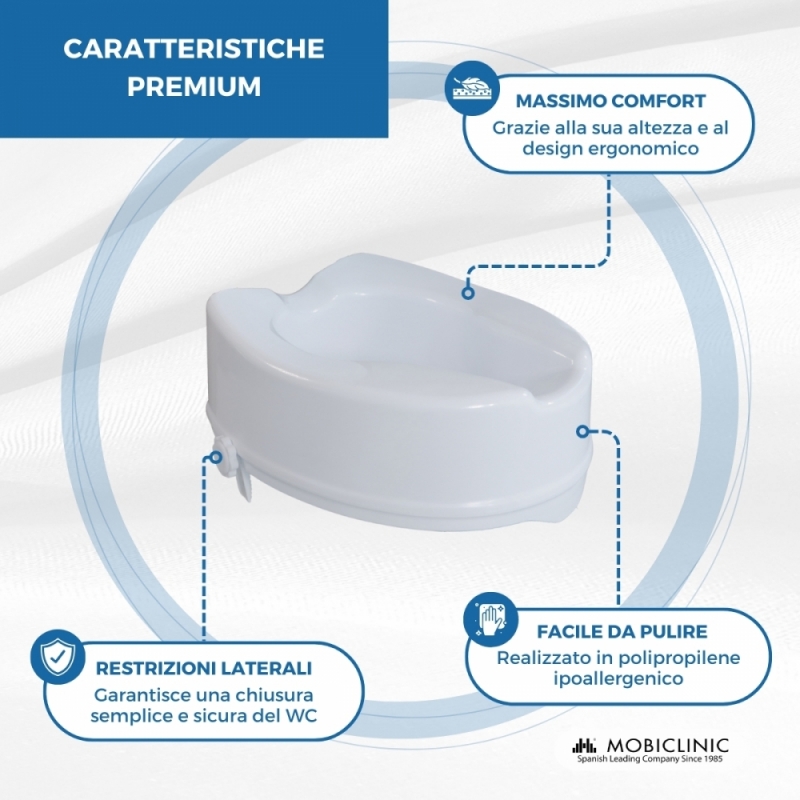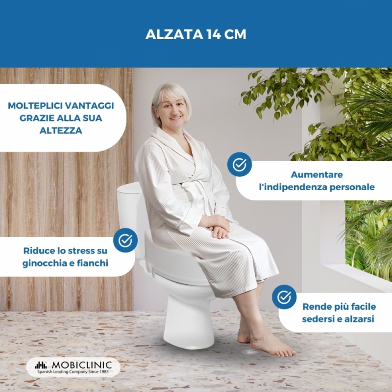 Assistenti e familiari noteranno anche i vantaggi di questo rialzo water per anziani e disabili, grazie alla sicurezza della sua struttura solida. Comprando questo rialzo wc, conveniente e di qualità, potrete alzare fino a 14 cm la seduta del WC.
