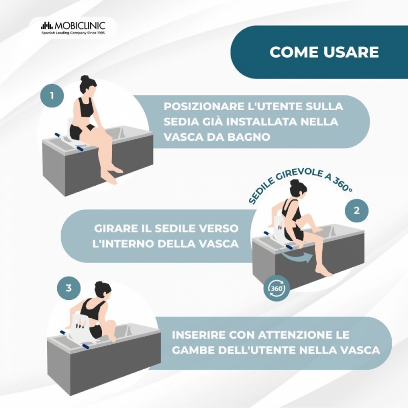 - La sua utilità : consente alle persone con mobilità ridotta di fare il bagno in sicurezza
