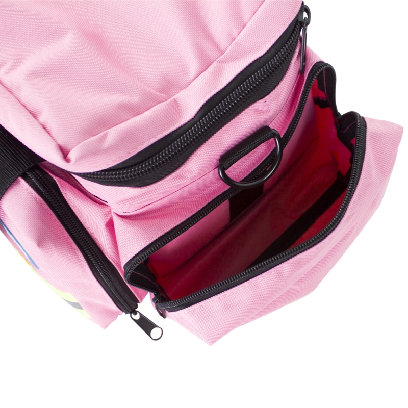 Ha due divisori interni regolabili e una tasca a rete per facilitare l'organizzazione del materiale sanitario, oltre a tre tasche esterne, di cui una frontale suddivisa al suo interno con bande elastiche.
