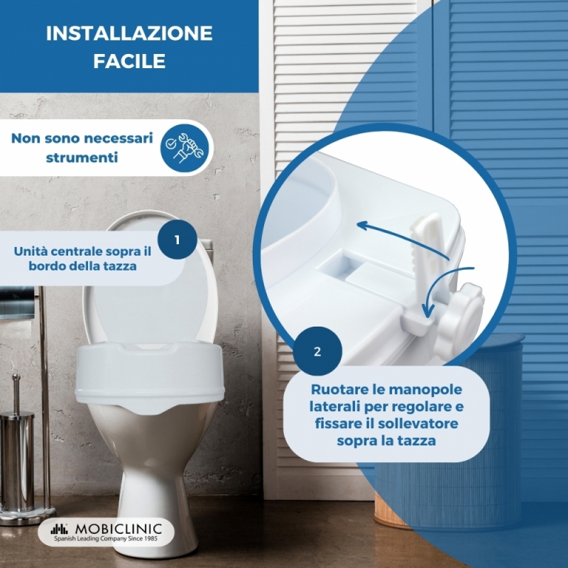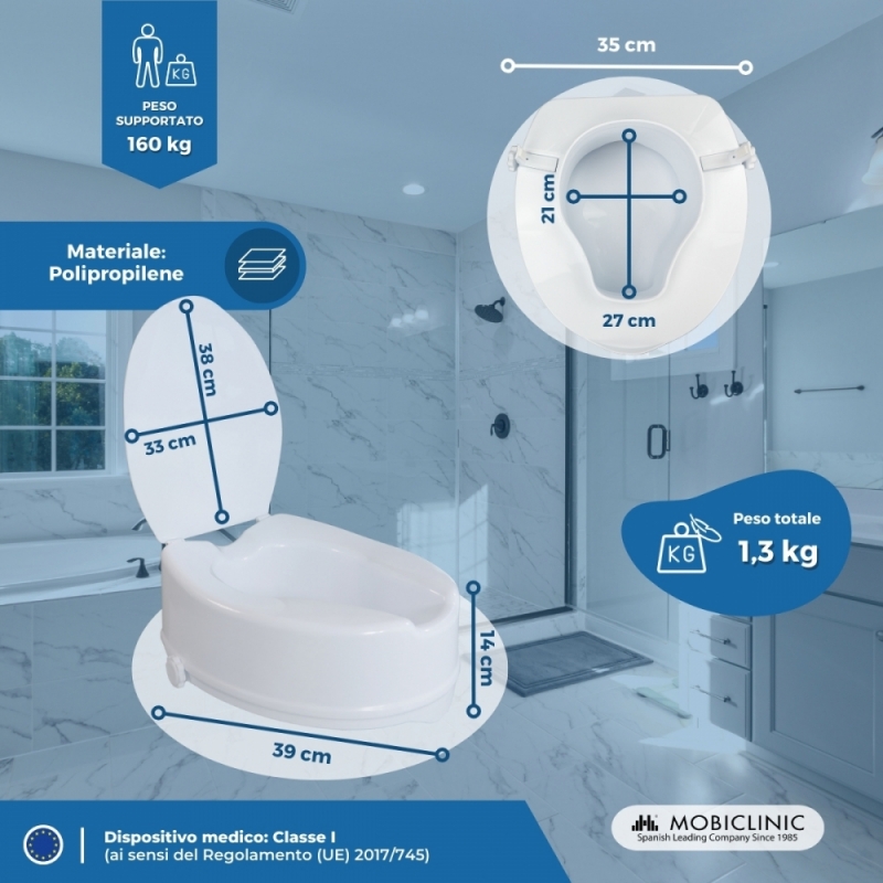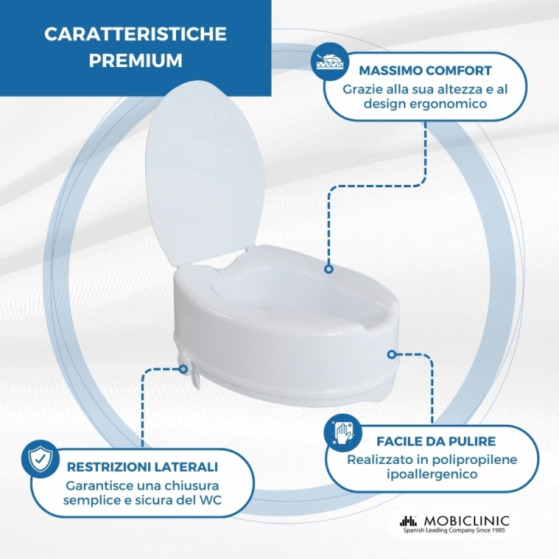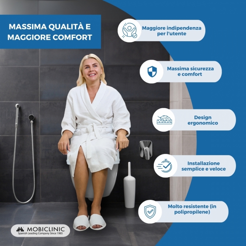 - L'apertura più grande dei normali alza wc, per facilitare l'igiene personale.